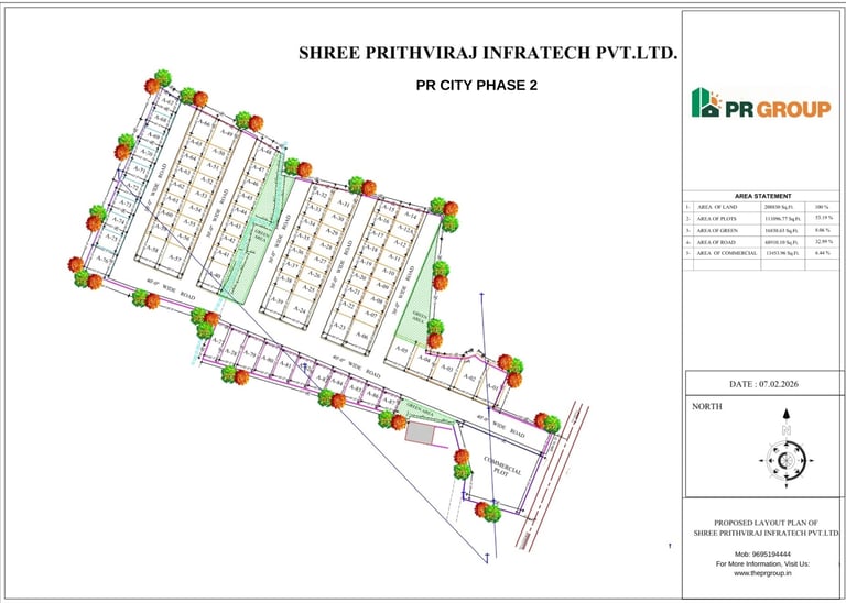 Spread across 1.34 lakh sq. ft., PR City Phase 2 features well-laid 40 ft. wide roads with drainage, street lighting, and a dedicated park for a balanced lifestyle. Choose from spacious plot sizes of 20×50 ft. and 25×50 ft., perfectly suited to build your dream home.